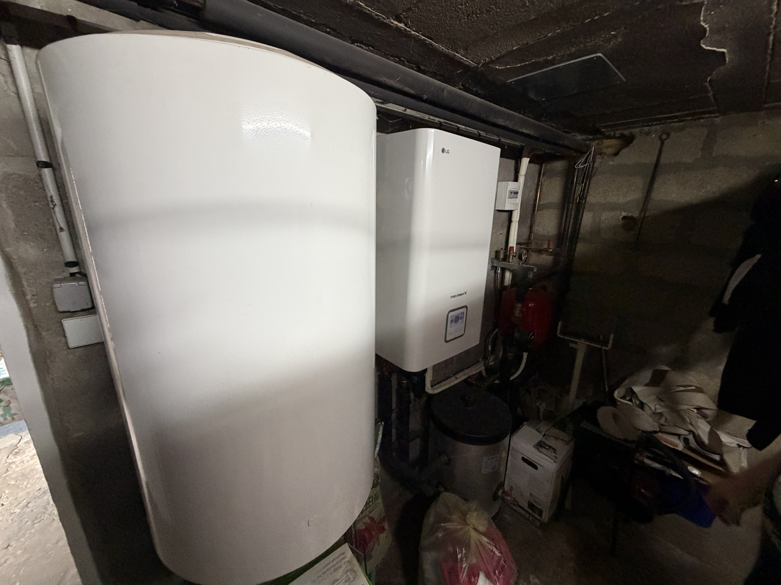 Une chaufferie (chauffage central par pompe à chaleur, eau chaude électrique)
