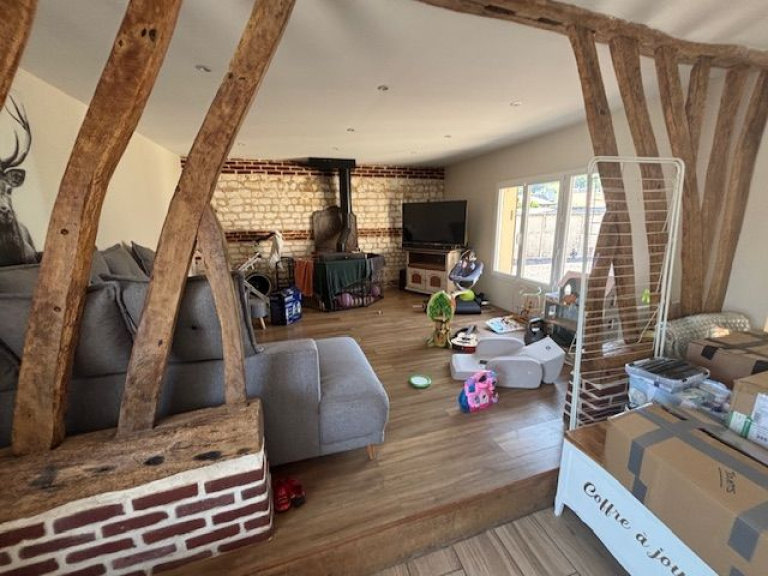 Entrée sur large pièce de vie avec cuisine ouverte aménagée et équipée, 3 chambres, une salle d'eau et une salle de bains , wc indépendant