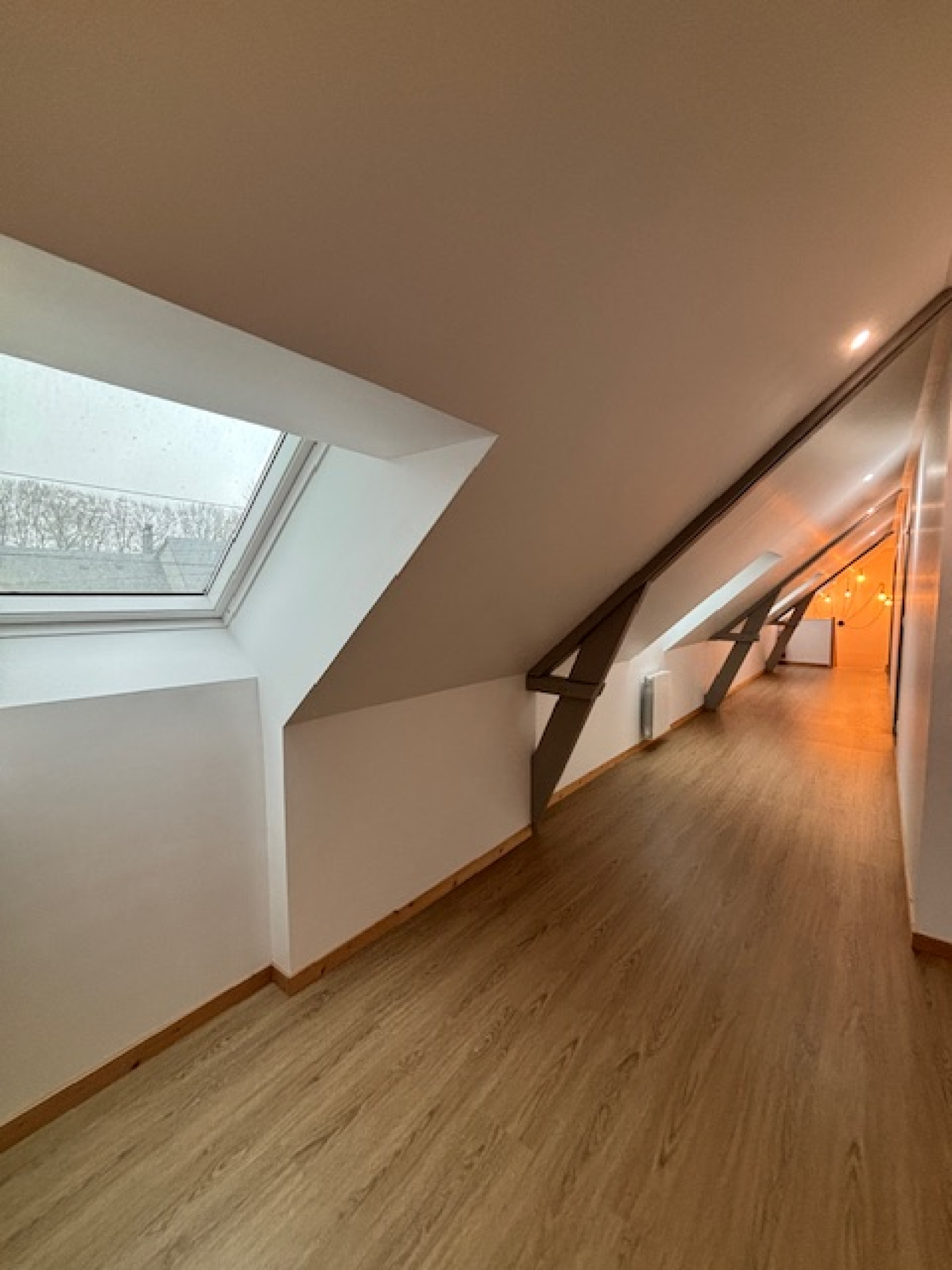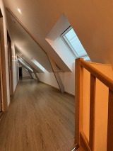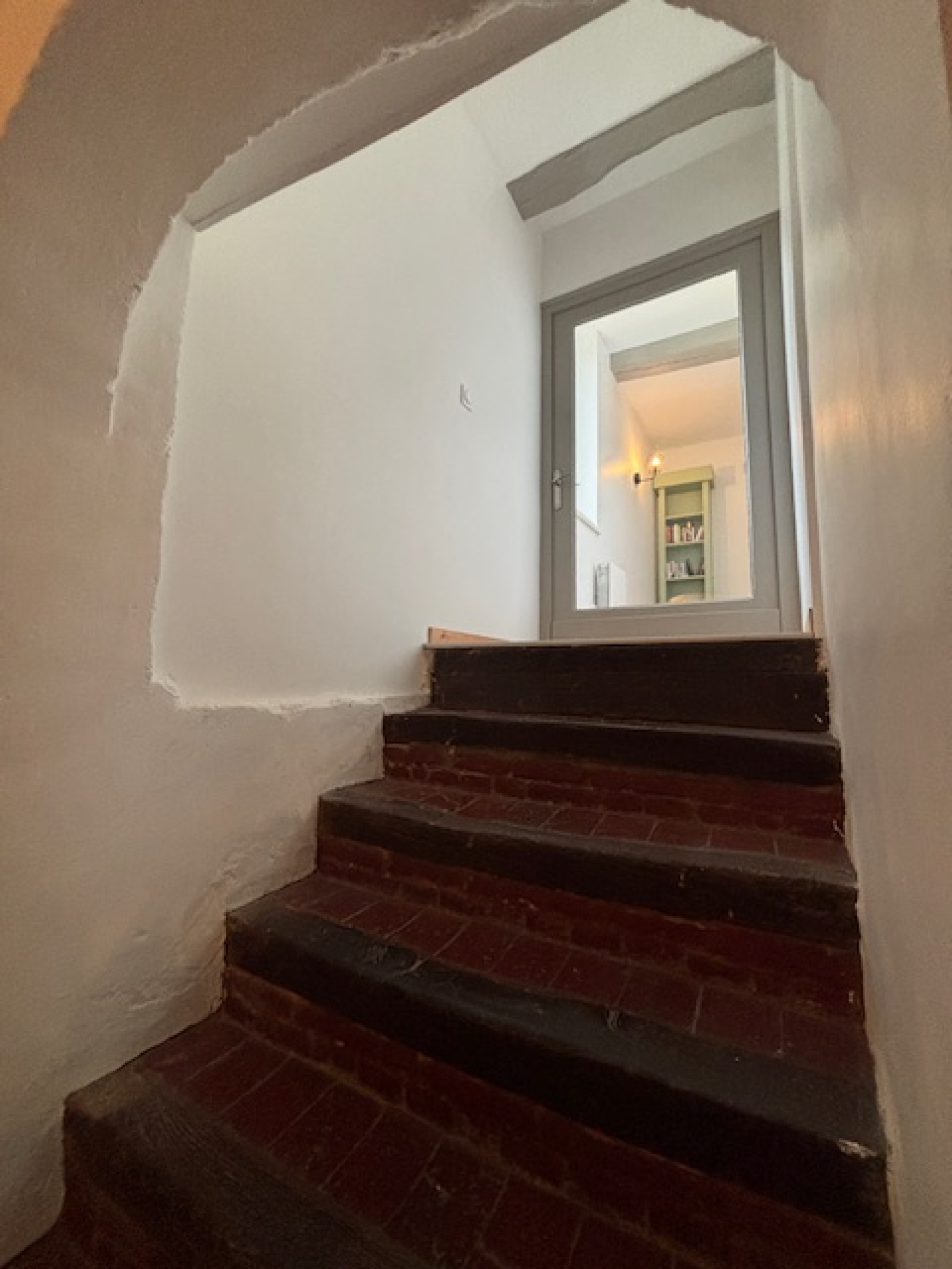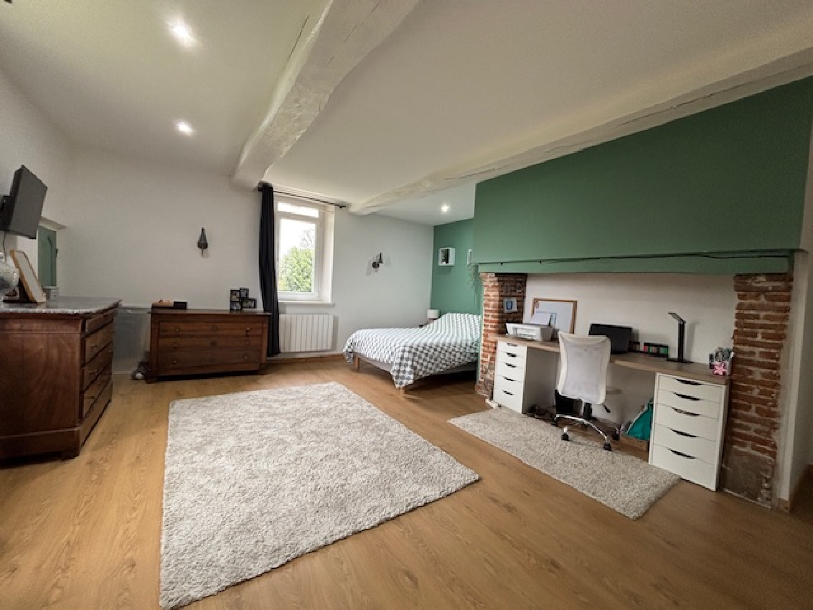 Un palier un poêle à pellets dessert 5 grandes chambres et deux salle d'eau avec wc.