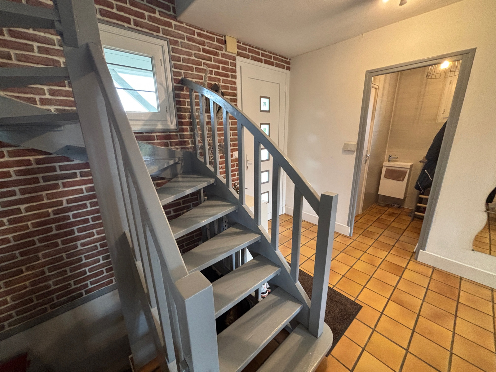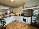Au rez de chaussée: Un hall d'entrée dessert un degagement (grands rangements), un wc indépendant et une belle piece de vie avec poele a pellets ouverte sur une cuisine équipée et aménagée.
