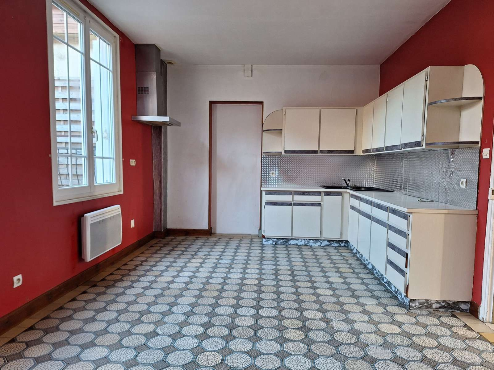 Rez de Chaussée: Salon/salle à manger avec poêle à bois, Cuisine aménagée, WC.