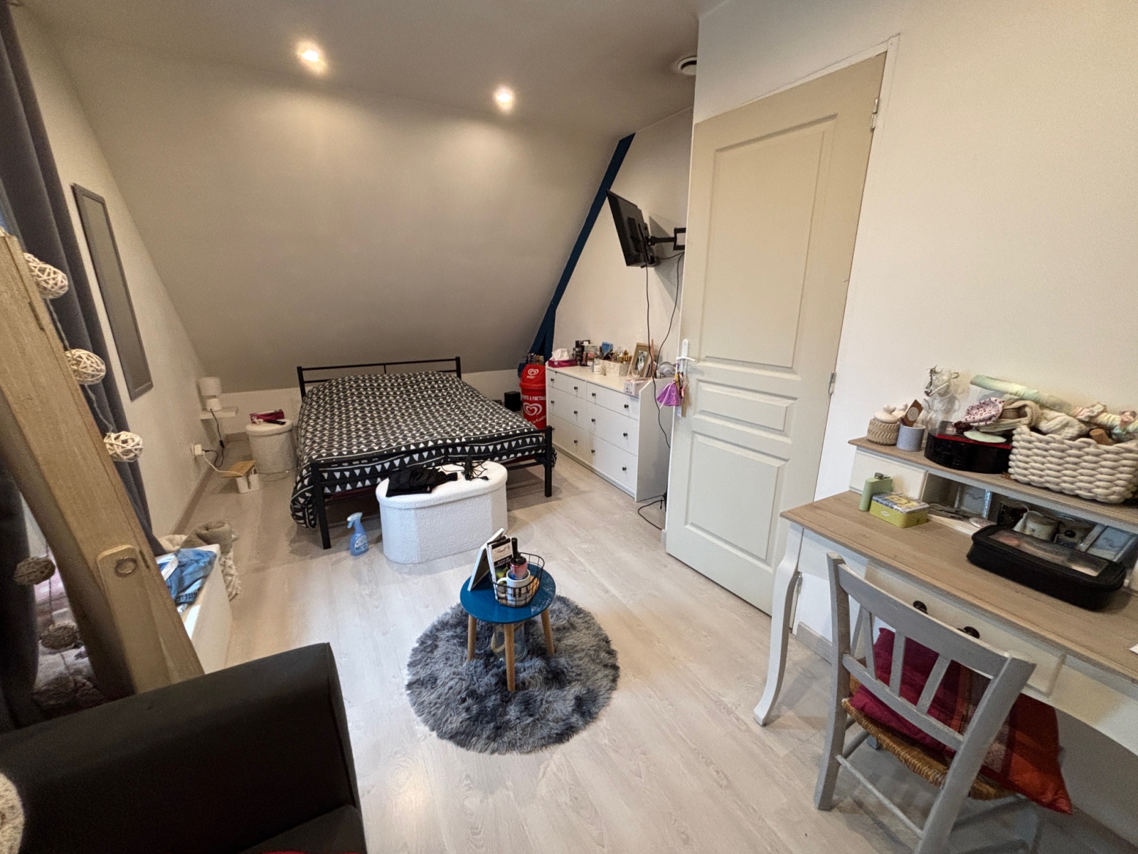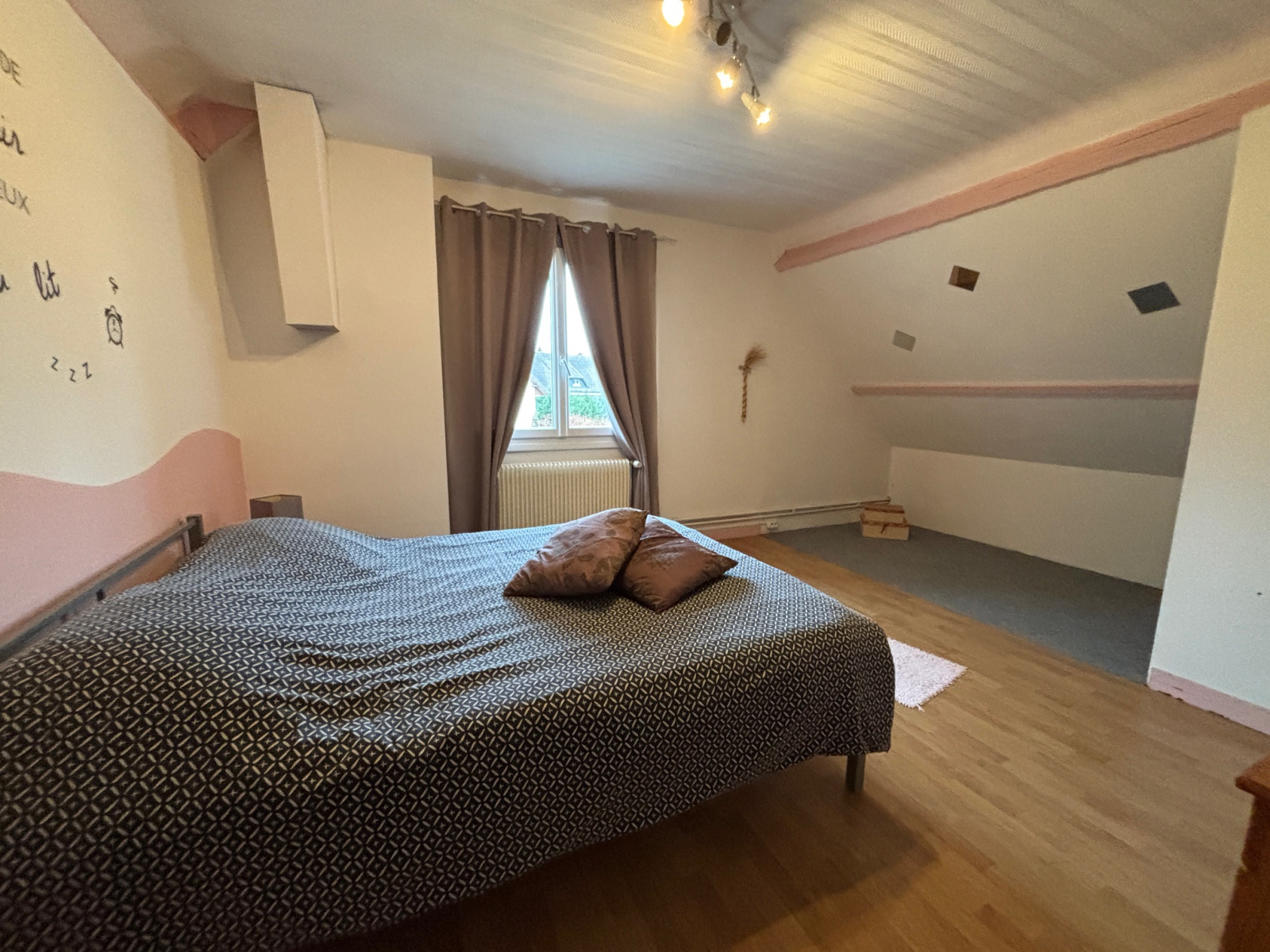Un grand palier dessert deux grandes chambres, un bureau ou chambre d'enfant et une salle d'eau.