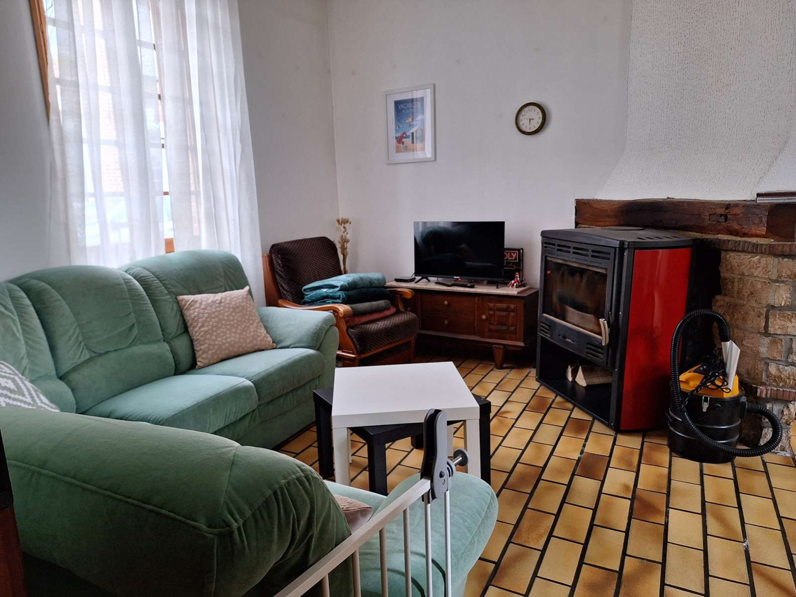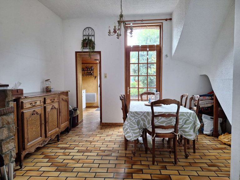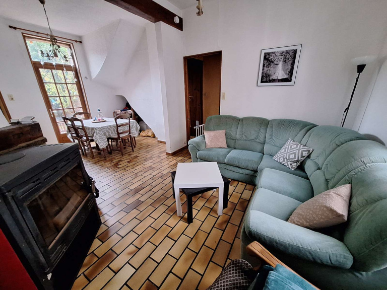 Rez de Chaussée: Entrée, séjour/salon avec poêle à bois, cuisine aménagée, salle de bains, WC.