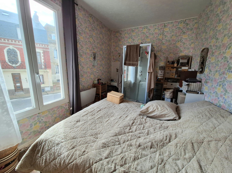 A l'étage: Palier desservant 2 chambres dont une avec une douche.
