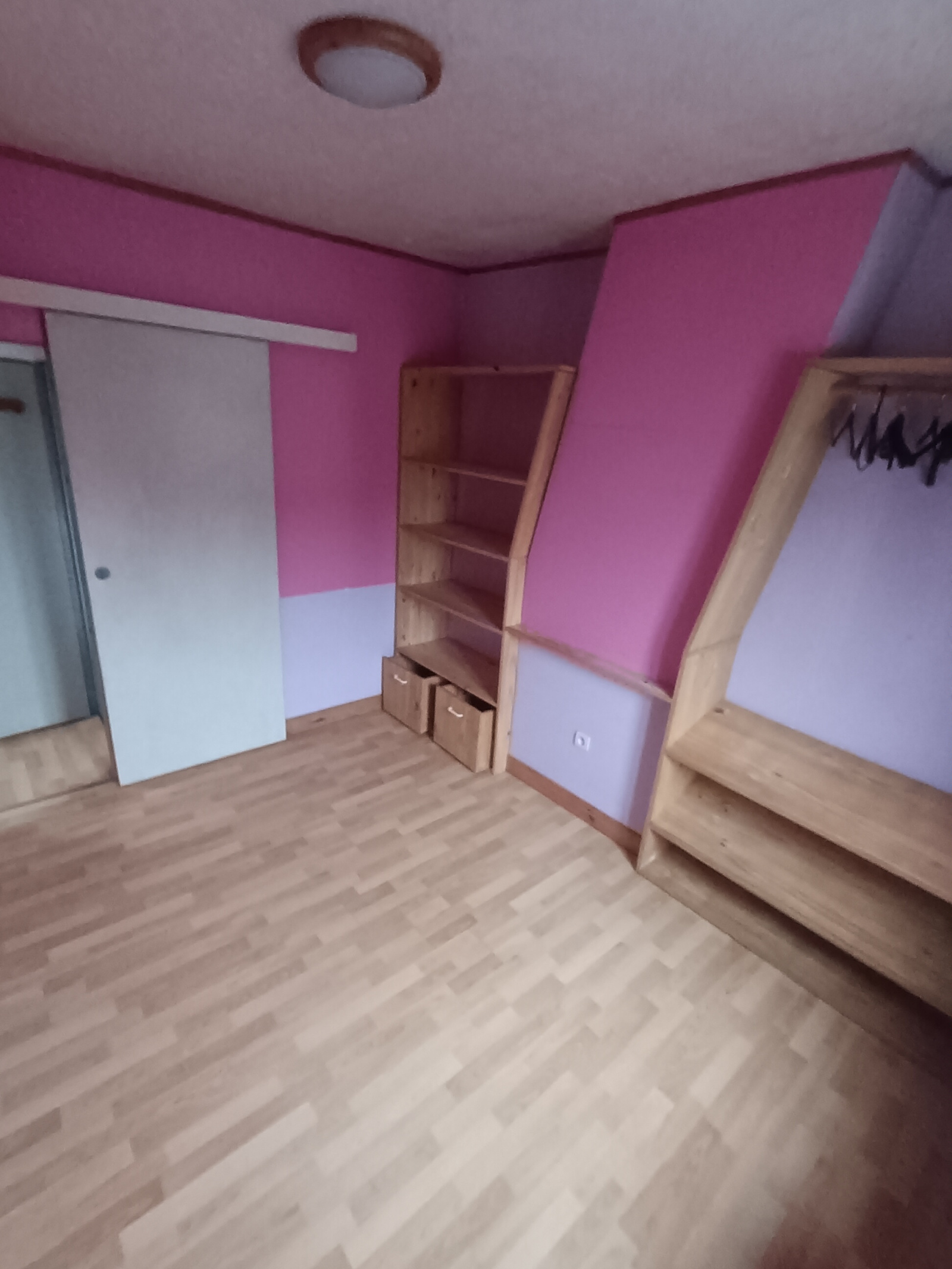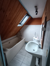 Au 1er étage : palier desservant 2 chambres et une salle de bain.