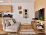 Une pièce de vie offrant une vue mer ouvert sur cuisine équipée, (meuble bas et haut, évier, plaque vitro, hotte et four), Une salle de bain avec douche, meuble vasque et WC, une chambre