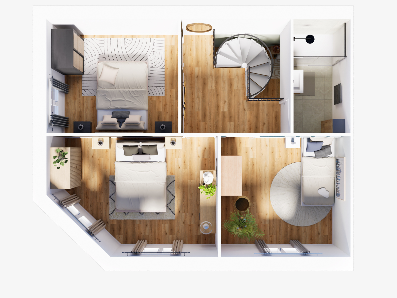 A l'étage : 3 chambres et une salle d'eau.