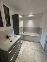 Hall d’entrée ,Pièce de vie ouvert sur cuisine aménagée et équipée (43 m²) _ 1 salle de bains offrant douche et baignoire_ 1 WC indépendant _ 1 coin Lingerie -sellier