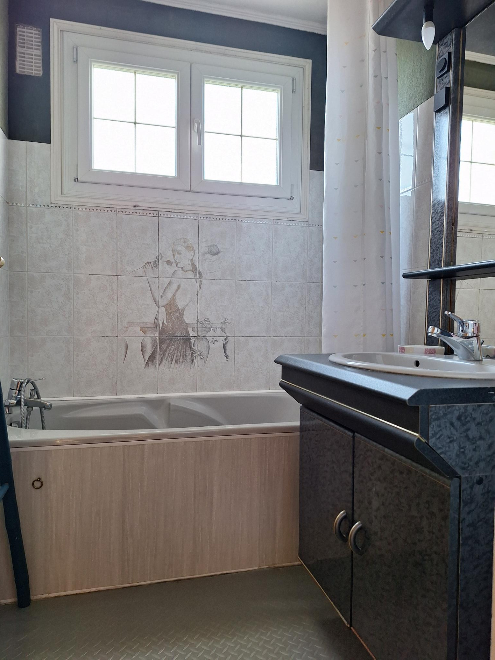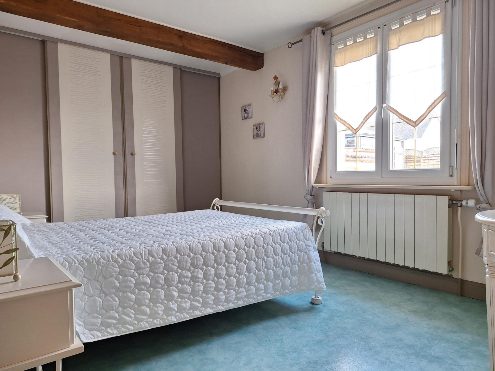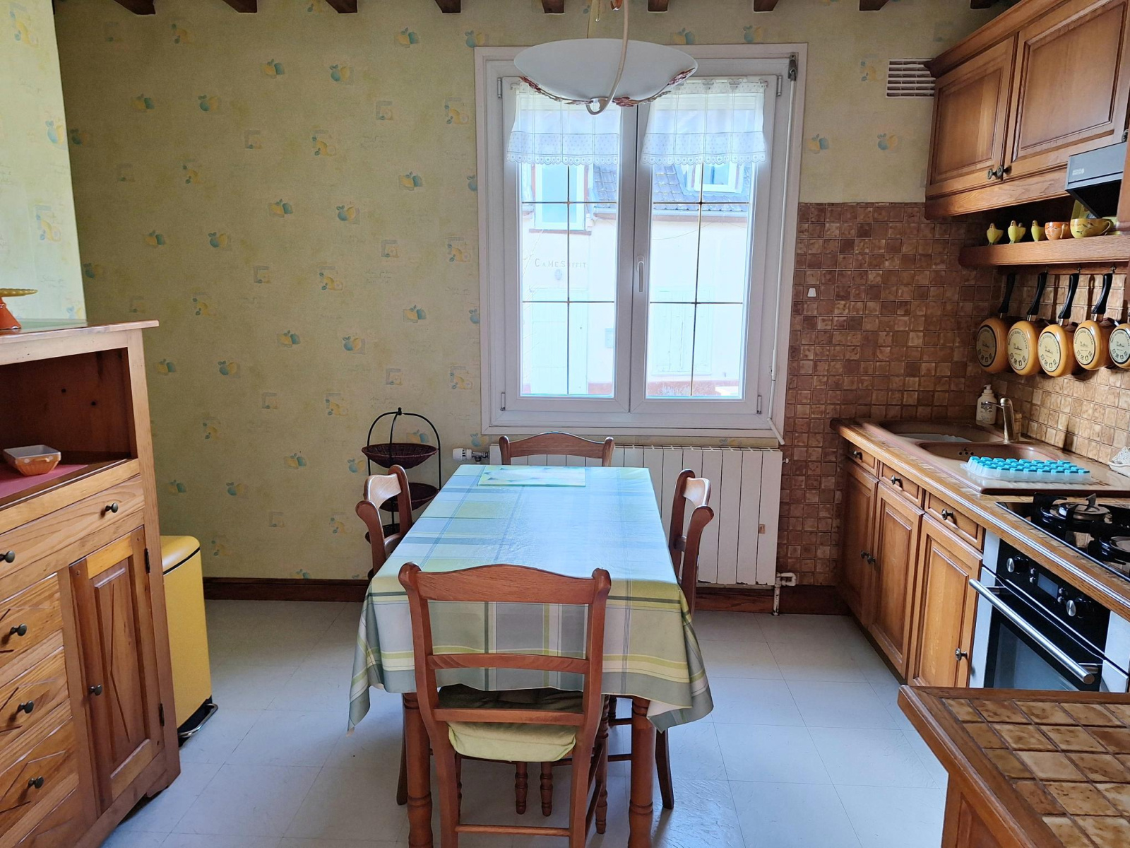 Rez de chaussée (surélevé): entrée avec placards, cuisine aménagée, un WC, une chambre avec dressing, une salle bains, séjour/salon lumineux avec cheminée.