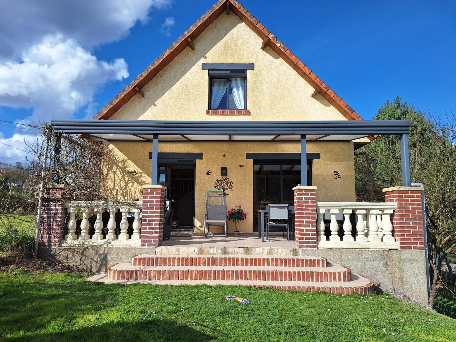 Huisseries aluminium, volets roulants électriques, chauffage central (chaudière à pellets récente), pergola....